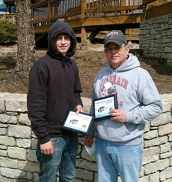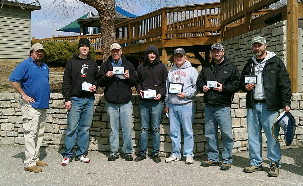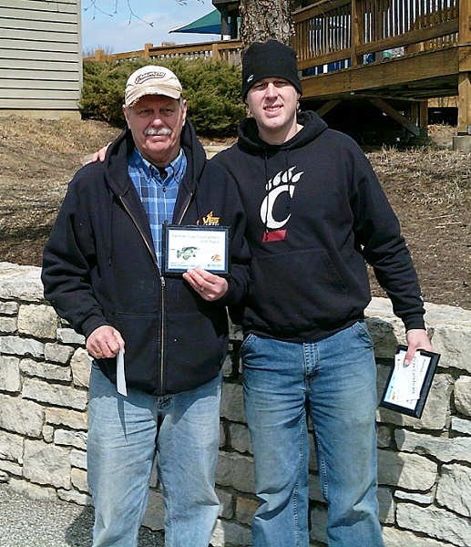 I always teach that cold weather is harder on fishermen than it is on the fish. Frank Yates and his grandson DJ Huegel proved that on Saturday, March 22, when they won our first Panfish Cup tournament of the year with 19.35 pounds of bluegill and crappie! They caught the fish on 1/32 ounce jigs, rigged with a plastic tube and tipped with a live wax worm. They took home $112 in Great Parks’ prize certificates, a $25 Bass Pro Shops gift card and some really nice plaques.
