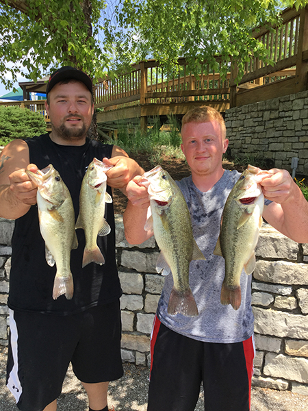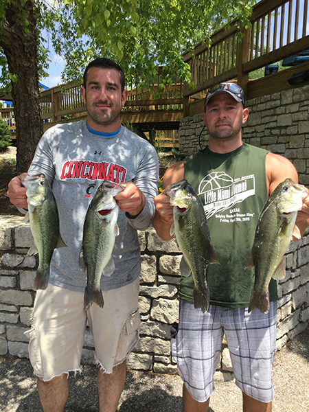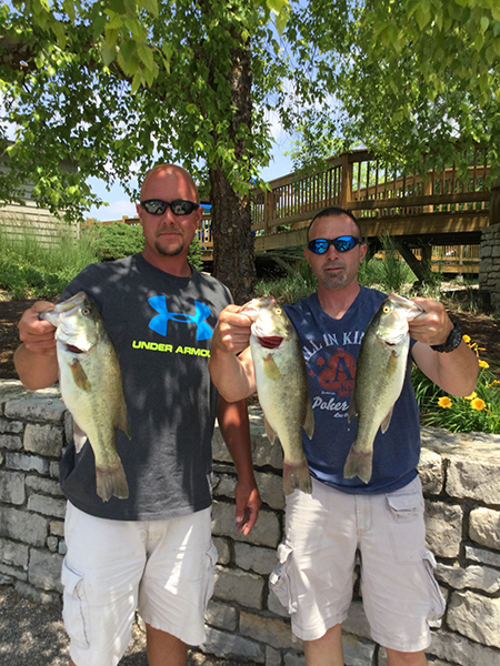 Julio Delgado and Paul Regensburger, both from Cincinnati, won the tournament with a five-bass limit totaling 16.12 pounds! They also had the biggest bass of the day, which tipped the scales at 4.63 pounds. They caught all of their fish flipping jigs. They won $661.50 in Great Parks prize certificates, plaques and a gift card to Bass Pro Shops.