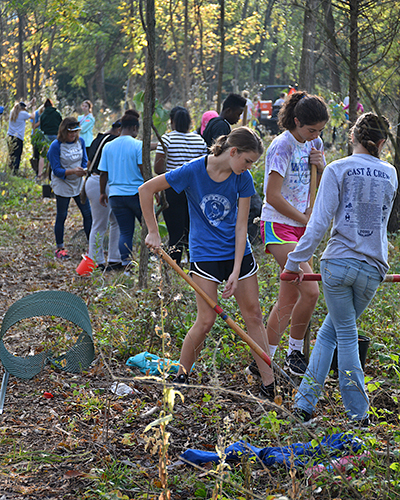 About 80 Wyoming High School students, chaperones and staff stopped by Glenwood Gardens in October for a service-learning project with Great Parks’ natural resource staff. Some students cleared invasive plants on the Wetland Loop trail, and a large group helped to plant nearly 100 native trees.