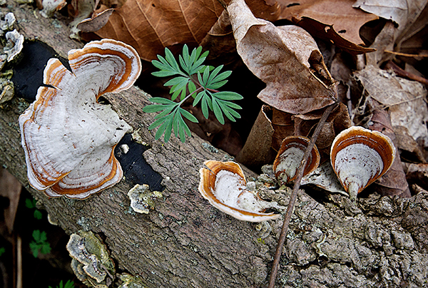 When downed trees or logs are left in the forest, a life cycle is started fueled by the decomposing wood. Plants, fungi and animals rely on logs as food sources and places to live. Decomposing logs enrich the soil and provide places for tree saplings and other plants to take root. They also serve as shelter and denning sites for animals.